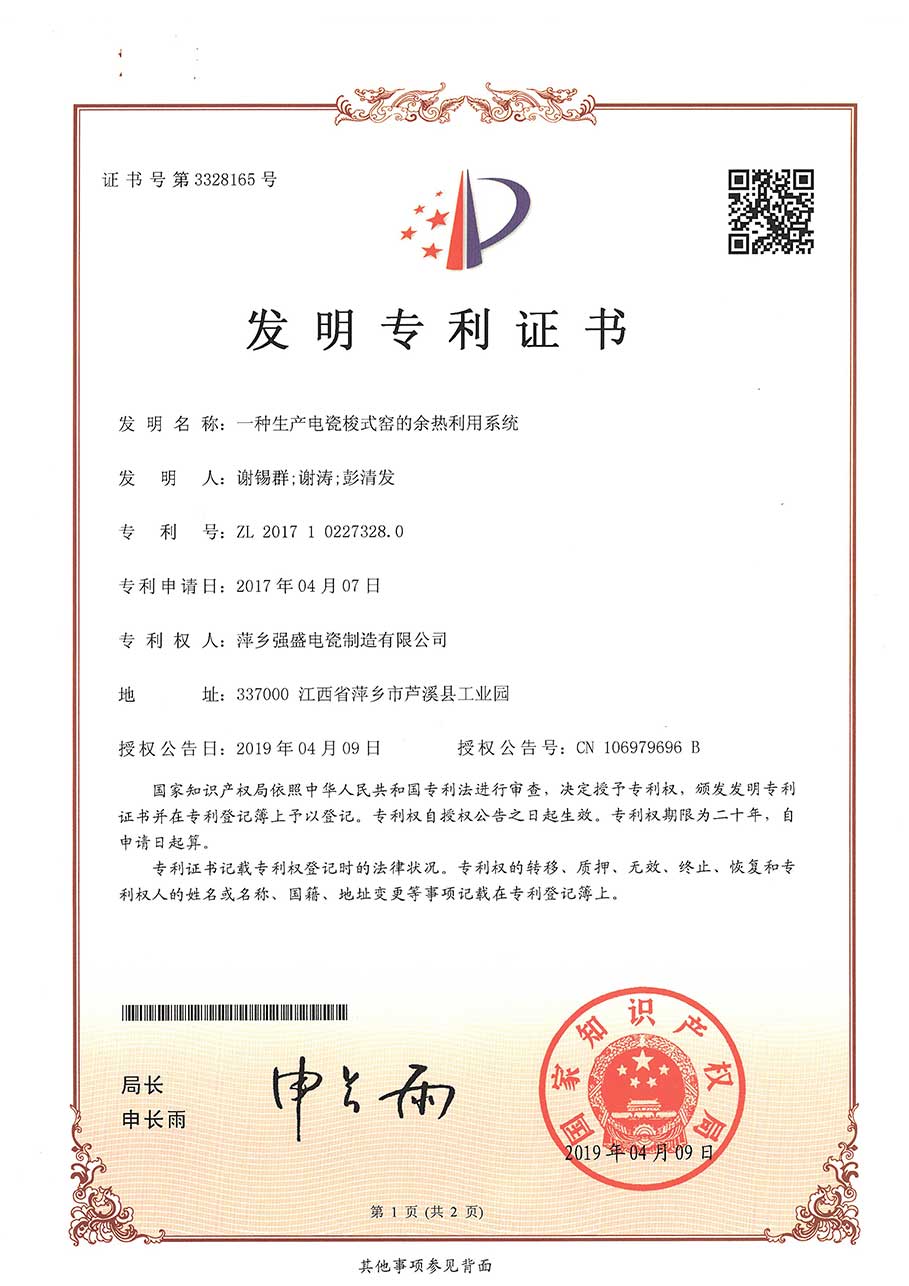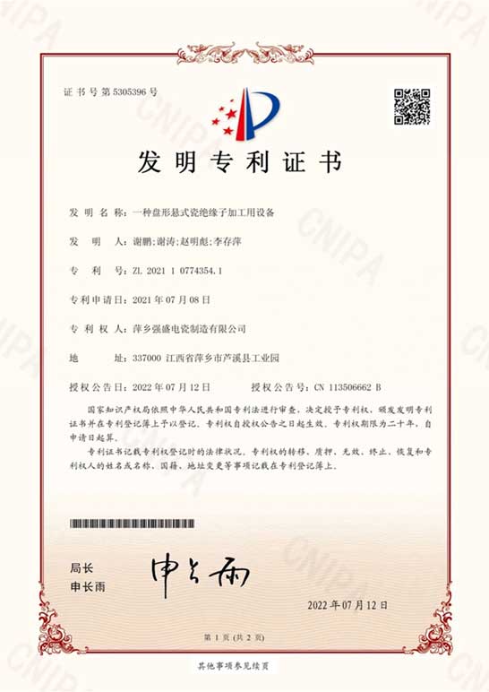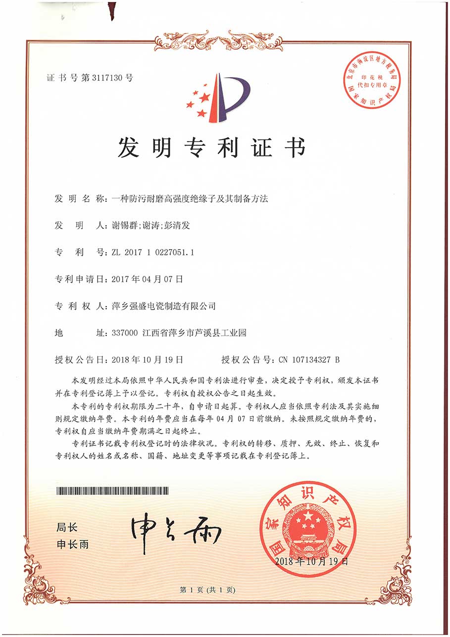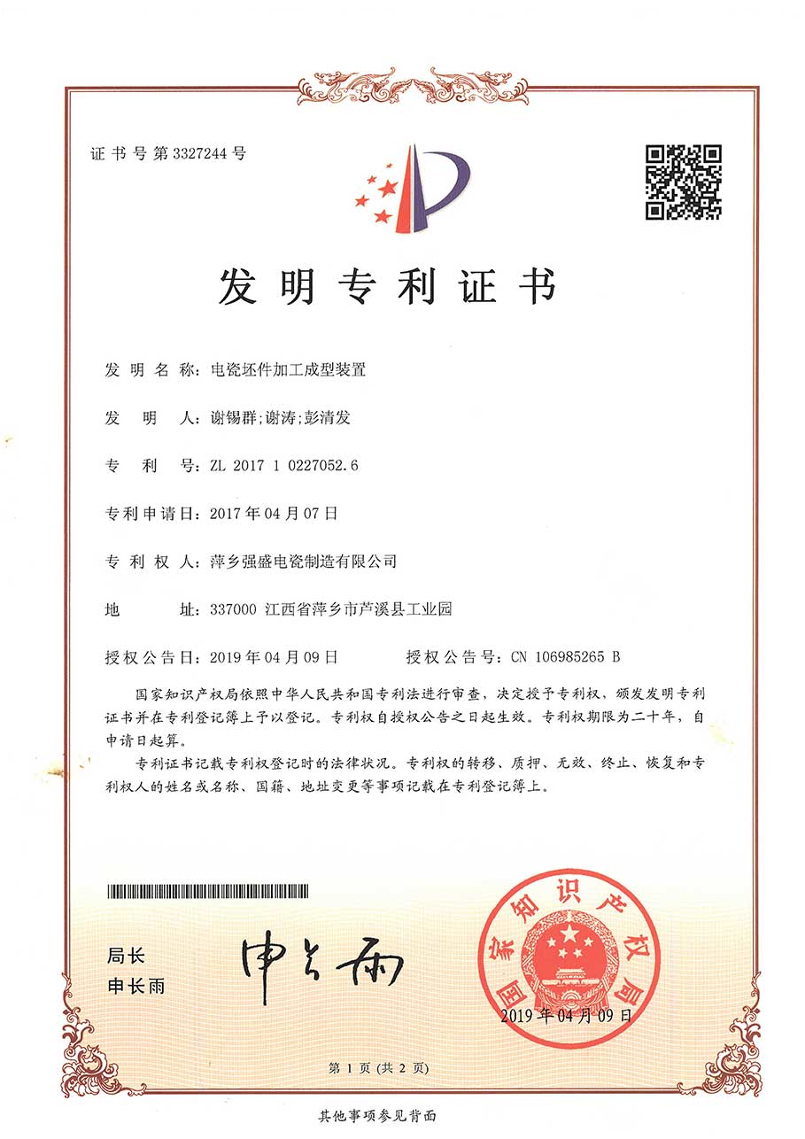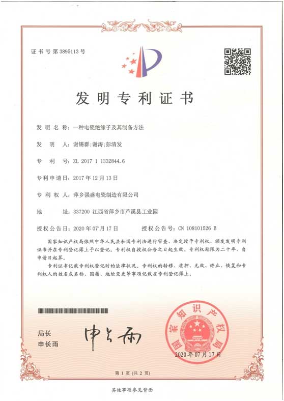 萍鄉(xiāng)強(qiáng)盛電瓷制造有限公司坐落于美麗的江西省萍鄉(xiāng)市蘆溪縣,成立于2009年,是一家集瓷絕緣子研發(fā)、設(shè)計、生產(chǎn)、銷售、服務(wù)一體的現(xiàn)代化生產(chǎn)企業(yè)。公司成立至今,一直專注于電力電網(wǎng)建設(shè)與發(fā)展,到目前為止公司獲得各種發(fā)明專利29余項。